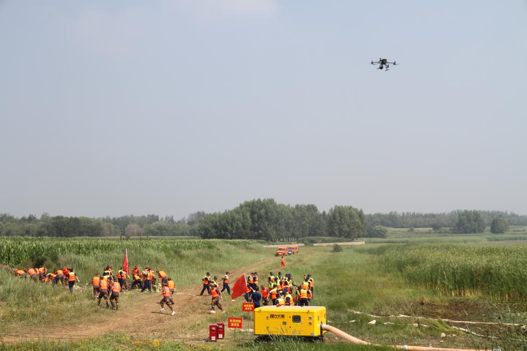 演練模擬長治市出現強降雨天氣過程,長治市防指啟動Ⅱ級應急響應,組織應急救援、水利等相關單位集中辦公,全過程密切會商、精準研判,緊盯強降雨威脅區域,點對點調度指揮,嚴格落實預警“叫應”機制。過程中調動各級救援力量支援災區,聯合開展抗洪搶險行動。共進行通訊應急保障、無人機偵查和物資拋投、轉移避險、內澇搶險、搭建帳篷、加固堤壩、航空救援、水域救援(包括沖鋒舟駕駛、活餌救援、離心力救援、翻船自救)、救治轉運傷員等九個科目。以多種救援手段,通過水陸空三維立體的形式,全面檢驗了現有裝備和人員在重大汛情發生后的救援能力。