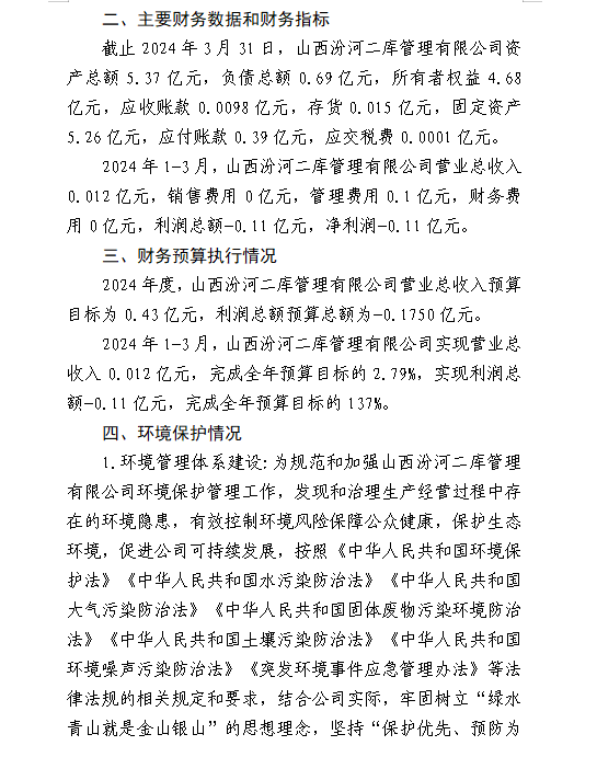 山西水控實業有限公司2024年第一季度信息公開報告