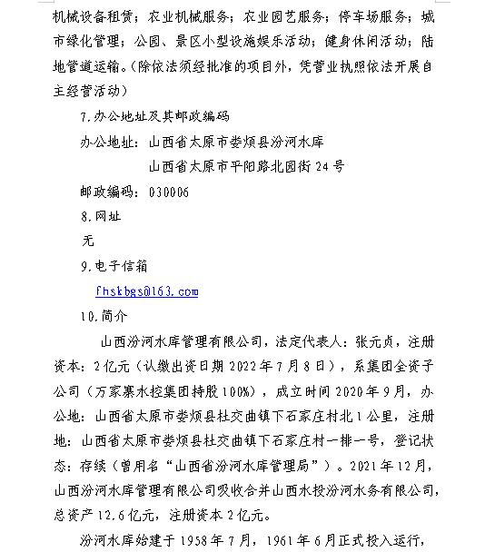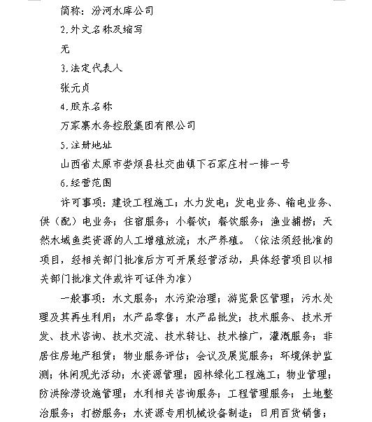山西汾河水庫管理有限公司
