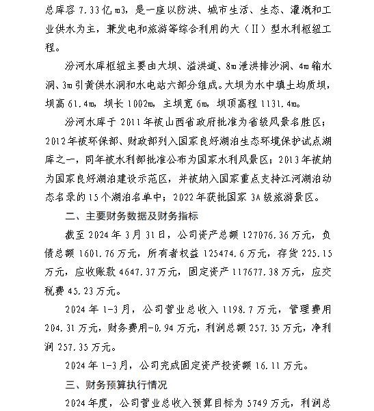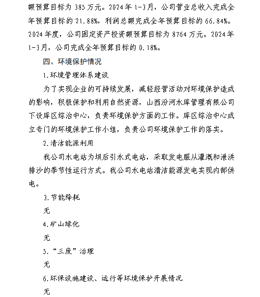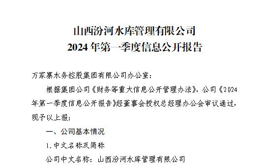山西柏葉口水庫管理有限公司2024年一季度信息公開...