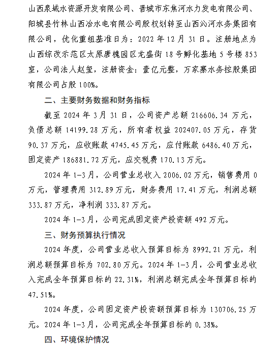山西滹沱河管理有限公司2024年第一季度信息公開報...