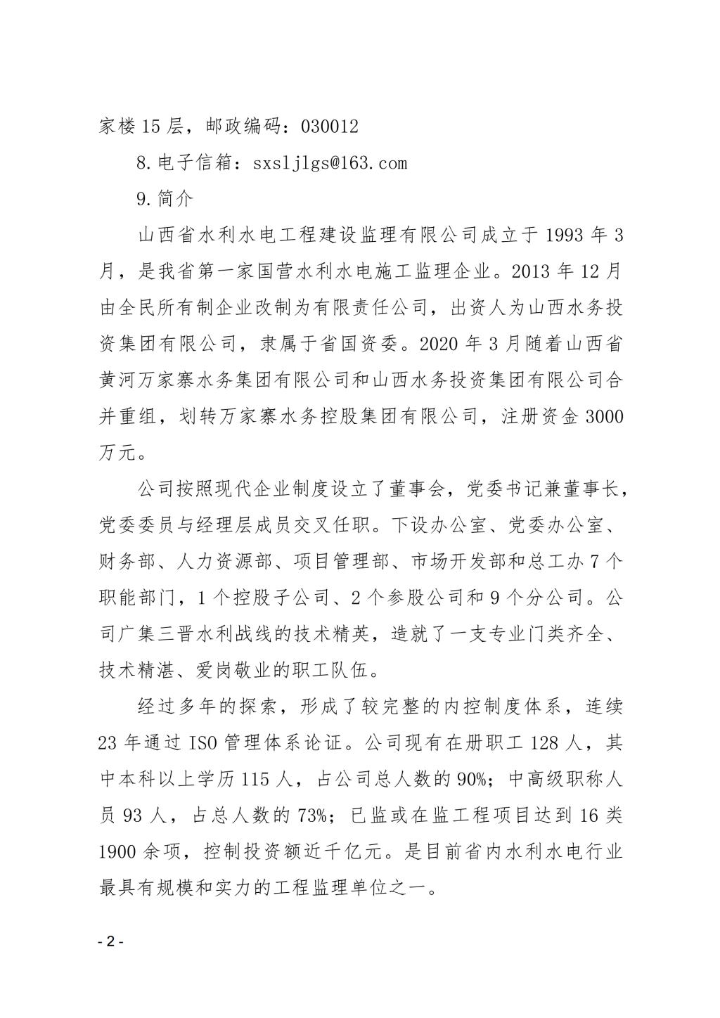 山西省水利水電工程建設監理有限公司