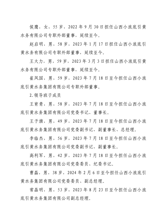 山西小浪底引黃水務集團有限公司2024年第三季度信...