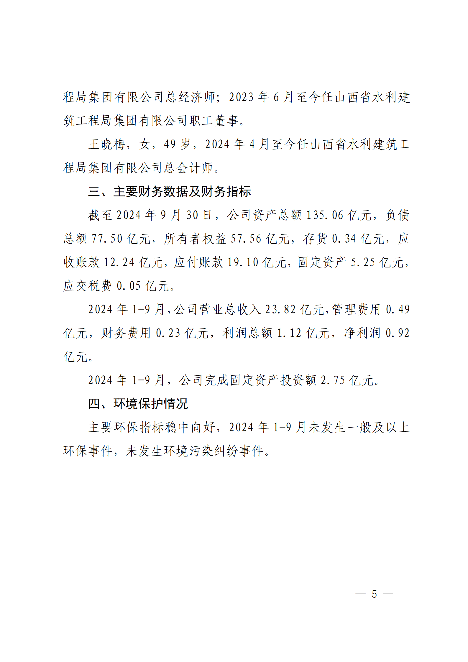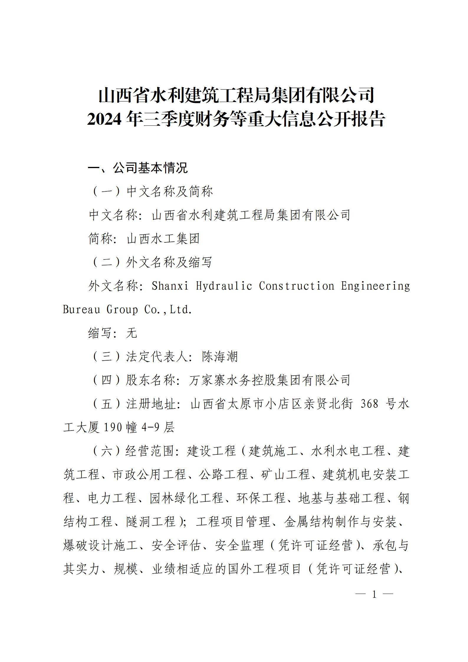 山西汾河一壩管理有限公司2024年第三季度財務等重...