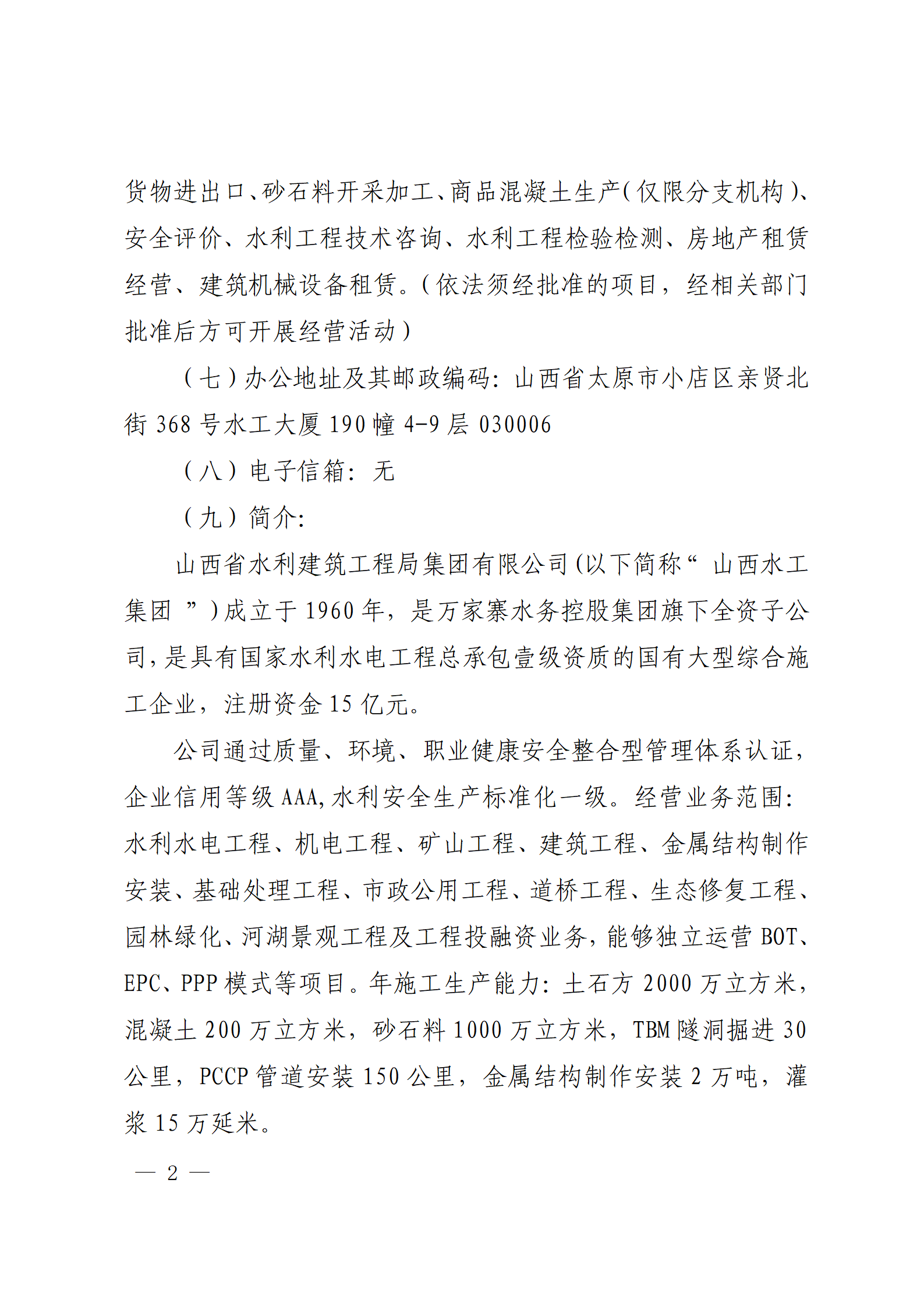 山西省水利建筑工程局集團有限公司