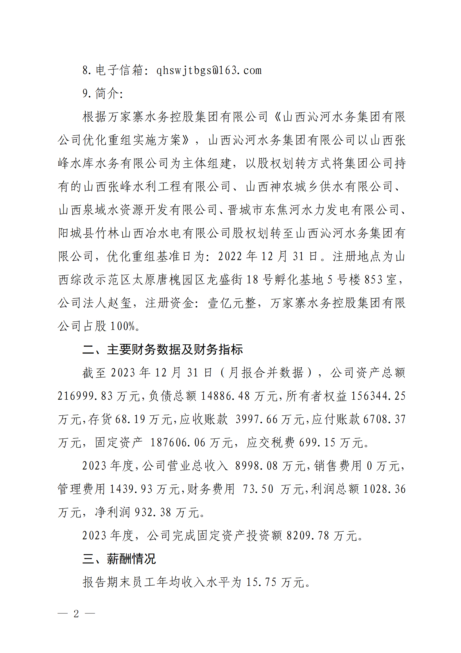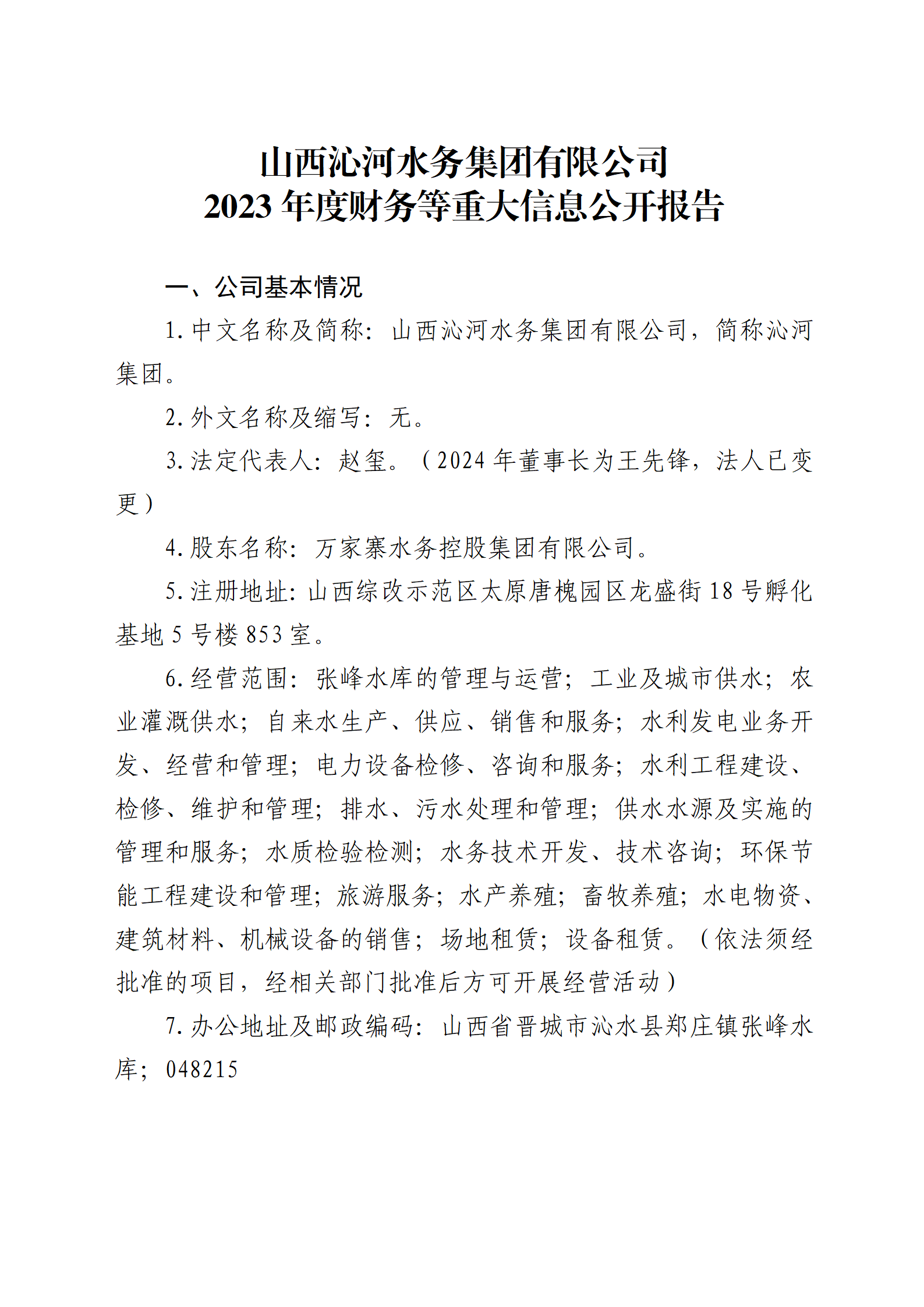 山西水投汾景水務有限公司2024年中期信息公開報告